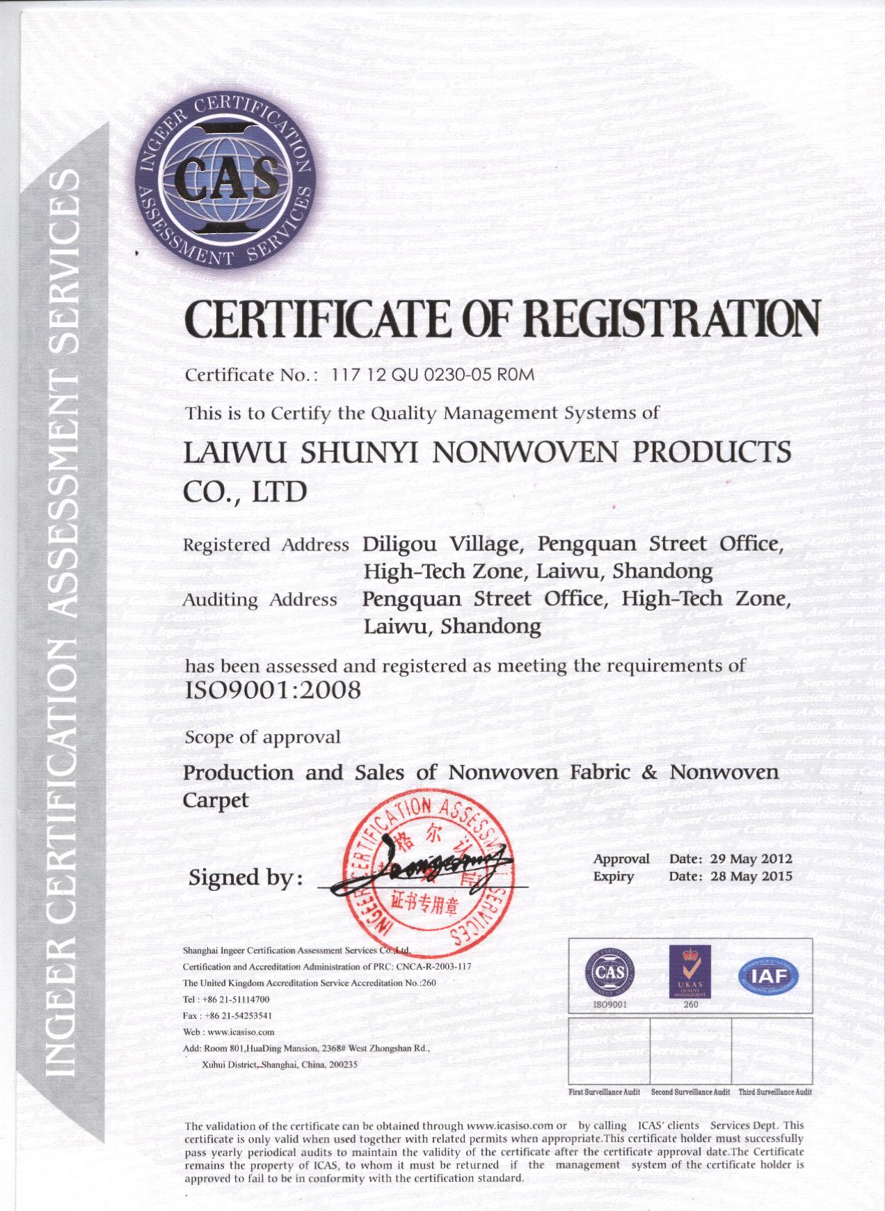 萊蕪順意無紡制品有限公司位于山東省萊蕪市高新區(qū),地處京滬高速公路東出口,40分鐘車程可達濟南遙墻國際機場、2小時可達青島港。交通運輸便利。