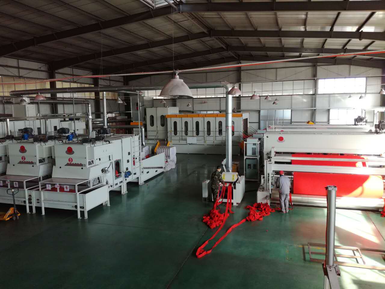 公司總投資1億余元,首期工程已完成投資3000萬元。現(xiàn)已建設(shè)標(biāo)準(zhǔn)廠房15000余平方米、引進多條無紡布生產(chǎn)線。其中,針刺無紡線4條、起絨機兩臺、電腦提花機1臺、條紋機1臺、地毯整理烘干定型線兩套。
